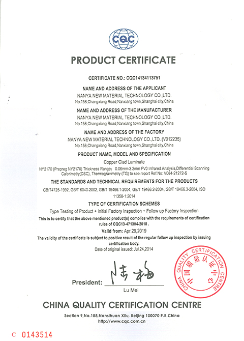 南亞新材始終堅持質量就是生命,持續不斷的改進生產技術和服務水平,不斷完善質量管理體系,務求滿足并超越不同客戶的要求和期望;經過不懈的努力,公司先后通過了ISO9001質量管理體系、 ISO14001環境管理體系和ISO45001職業健康安全管理體系的認證及改版升級。
